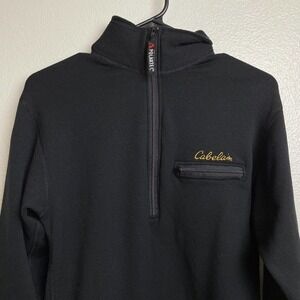 Cabelas Polartec Base Layer Small Men's Black 1/2 Zip Outdoors Hiking Pocket USA