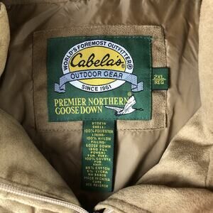 Up for sale is a used Cabelas Premier Northern Goose Down Womens 2XL Brown Suede Hooded Puffer Jacket. Jacket is in overall good condition without any stains, rips or tears.