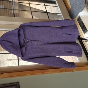 EUC...Cozy purple hooded sweater featuring a button-up front. Perfect for casual wear. Check out all pics for details and approximate measurements.