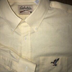 Cabelas Rare VTG Button Up Shirt 17.5 33 Yellow Long Sleeve Duck Hunting Shirt