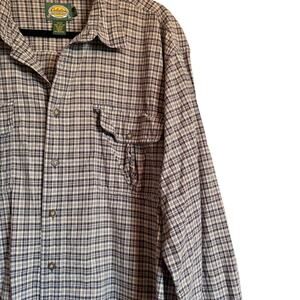Cabela's Outdoor Gear classic plaid camp shirt. This shirt is in good preowned condition with no holes, tears or stains. Please see images for approximate measurements and details