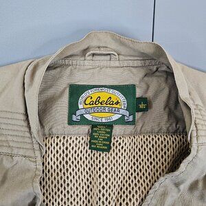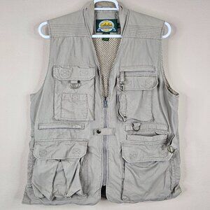 Cabelas Safari Vest Mens Large Beige Multi Pocket Fishing Hunting