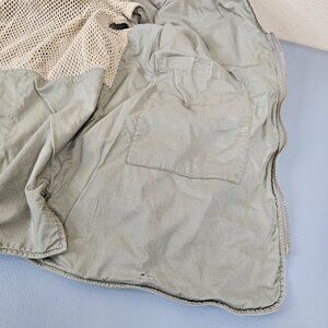 Vest is pre-owned with signs of wash/wear. Please note there are two holes on the interior lining which are only cosmetic and do not extend into the pockets. Additionally, there is some yellowing/discoloration on the collar even after laundering the vest. Please refer to all photos for details/measurements.