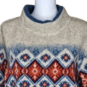 Fair Isle print thick sherpa fleece mock neck sweater.