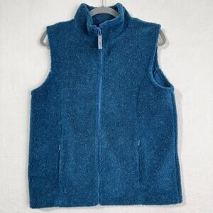 Cabela’s Sherpa Fleece Speckled Teal Blue Sweater Vest Women's Medium VTG