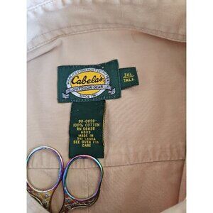 Cabelas Shirt Mens 3XLT Beige LS Embroidery Button Up Pockets Outdoor VTG FLAWS