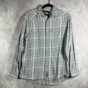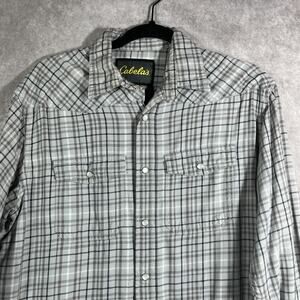 Cabela's Shirt Mens Medium Gray Plaid Western Pearl Snap Long Sleeve Cotton