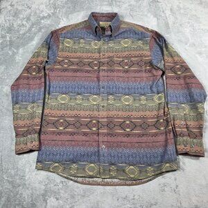 Cabelas Shirt Mens Medium Tall Deerskin Soft Chamois Button Up Southwest Aztec