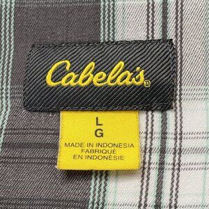 Cabelas Shirt Womens Large gray green white Plaid Button Up Roll Tab Sleeve Outdoor