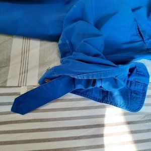 Cabelas Signet Angler Vented Chevy Emblem Rolled Sleeves Fishing Shirt Size M. Hook & Loop pockets and collar. Some bleach stains on right sleeve.