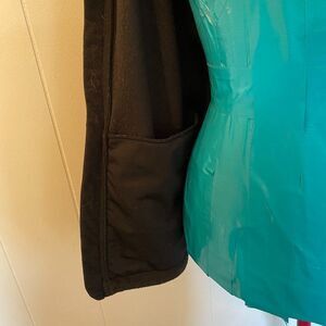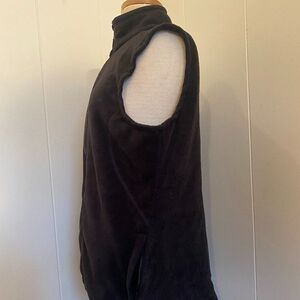Vest zips up the front has side pockets with zipper closers and inside pockets on each side.