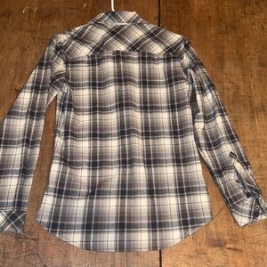 Cabela's Stretch Flannel Women’s Plaid Button Down Shirt Size Medium Black White
