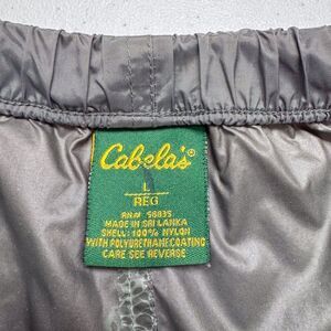You are purchasing a Cabelas Waterproof Pants Mens Large Gray Outdoor Hiking Camping Nylon 32x30. It is gently pre-owned and in great shape with no visible issues observed - check out the pics for details.