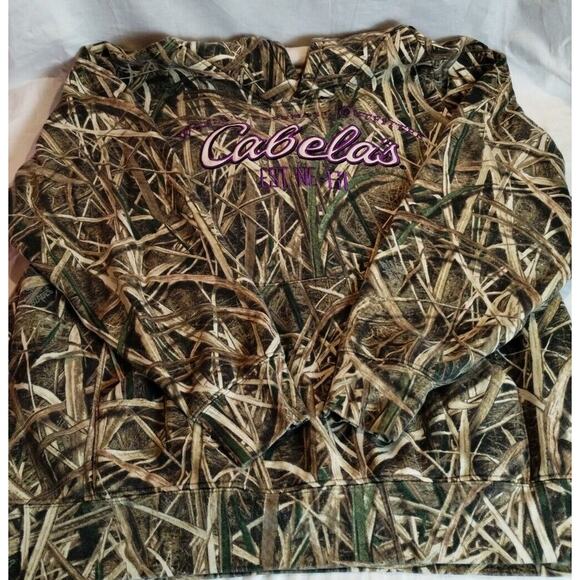 Cabela's Womens 2XL Camo Hoodie Sweatshirt Mossy Oak Duck Hunting Cattails