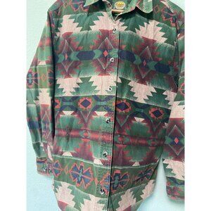 Cabela's Women's Green Patterned Button Up Long Sleeve Shirt Top Size Large
