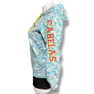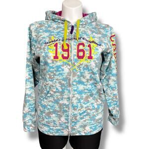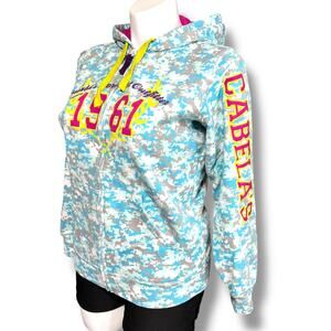 Cabelas Womens Hooded Hooded Sweatshirt Full Zip Camo Blue White Gray Large