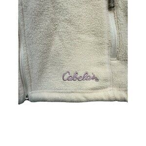 Cozy and practical fleece jacket from Cabela's, crafted for outdoor enthusiasts. Features a full zip design and secure pockets, offering comfort and utility.