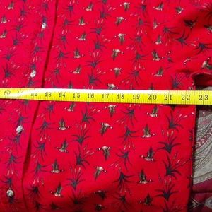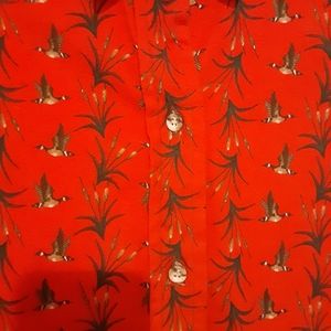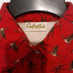 Cabela's classy red long sleeved flannel shirt with flying duck designs. Gently worn. Very warm and comfortable. Great with jeans as a shirt or worn over a tee. 100% cotton and made in USA. pit to pit is approx 22 1/2".