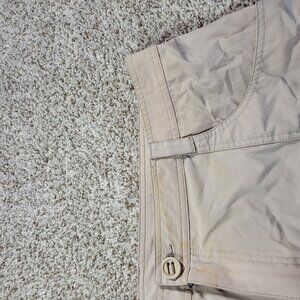 Cabelas XPG Pants Mens 44x30 Tan Cargo Performance Nylon Convertible Staining*. Has staining at waist