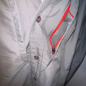 Cabela’s XPG extreme performance gear UPF 50 wick no fly zone tech technology long sleeve adjustable cuff button front, chest mesh line zip pockets logo shirt XL