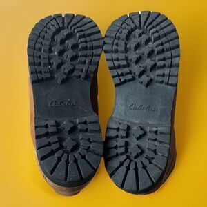 Cabelas size 8M brown hiking boots with red accents. Features durable laces and rugged soles.