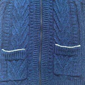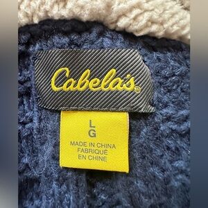 Cabela’s cable knit sweater and Sherpa vest Large Navy blue and cream Fall