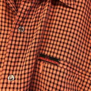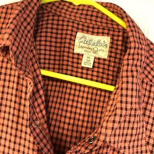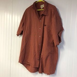 Cabela’s orange Checkered Plaid Short Sleeve Button Down Shirt XL Tall Ultra Dry