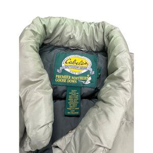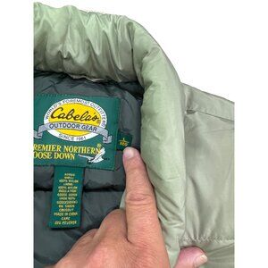 Stay warm and stylish with this Cabelas outdoor gear green vest. Made from soft, insulating goose down, this size large vest is perfect for any outdoor enthusiast looking for a practical and versatile piece of clothing. SKU 3038