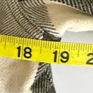 A super shaket in a sporty look. The buffalo plaid is olive and cream Patch pockets on the front. The nice large brown buttons on the front give it a super nice look. I just showed it buttoned but it look very nice worn open. It will keep you warm in the great outdoors. Measurements are pit to pit flatfold about 19”. The total length is about 26 1/2”. No visible flaws. Any questions please ask and we will answer questions ASAP. R 2