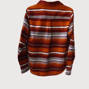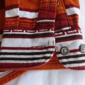 Cabela's women's size M, cotton flannel striped shirt, vibrant orange, burgundy, cream