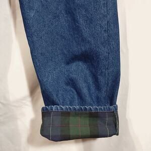 Cabelas Flannel Lined Plaid Jeans Blue Denim Mens Pants Work Wear Used