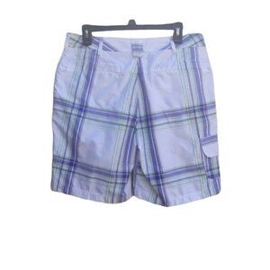 Cabela's Shorts Activewear Plaid UPF50 Sports Bermuda White Purple Green Sz 10