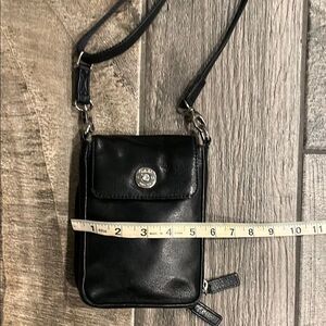 Sleek and stylish black leather crossbody bag, perfect for everyday use. Features a secure zip closure and adjustable strap for comfort.