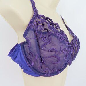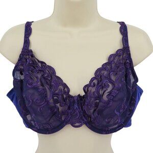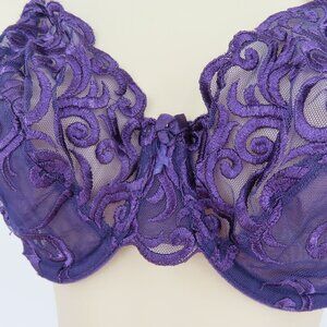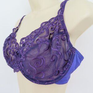 Cabernet 38D Bra 42-1150 Purple Embroidered Scroll Mesh Underwire Unlined