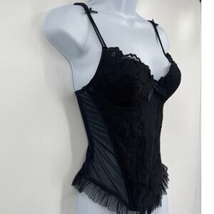 Cabernet Black Lace Mesh Corset Bustier Top Ruffle Hem Lingerie Y2K Sexy
