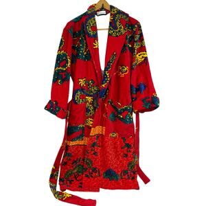 Cabernet Robe Medium Dragon Terry Cloth Peacock Belted Pockets Unisex Chinese