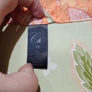 Cabernet Woman Plus Sz 1X Floral Kimono Robe Orange Green Butterfly Art To Wear