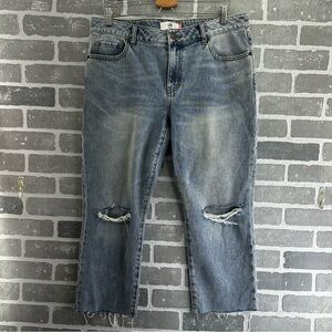Cabi 100% BF Boy Friend Light Wash Distressed Jeans Size 10