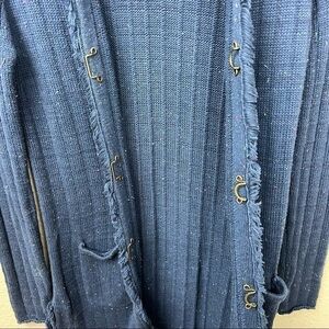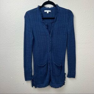 CAbi 181 Duchess Cardigan Sweater Blue Confetti Fringe