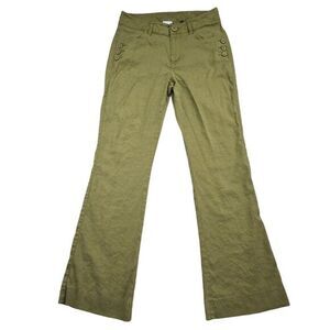Cabi -193 Charlie Trouser Pants Flare Linen Olive Green Women's Size 2