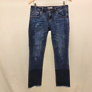 Cabi 2 Slim Boyfriend Two Tone Stars Women’s Jeans Frayed Hems Cropped Stretch