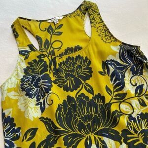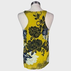 Cabi #286 Bali Yellow/Blue Floral Silk Blend Tank Top Medium Round Neck Blouse