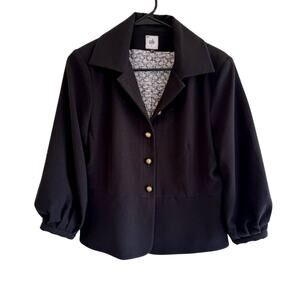 Cabi #3027 Abbott Billow Sleeve Military Style Black Gold Button Blazer Size 8