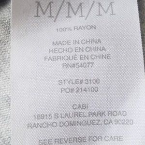 CAbi Drape Tank Style #3100. Draped, cowl neckline. Spaghetti straps. Double layered, fully lined. Gray. From fall 2015 collection. 100% rayon. Size medium. Excellent preowned condition.