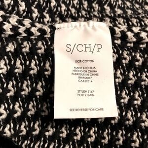 Cabi #3167 FERGIE Black White Stripe Cowl Turtleneck Split Knit Sweater