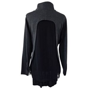 Cabi 3184 Love Carol Modern Mesh Gray Ponte Self Tie Zip Jacket Layered Look