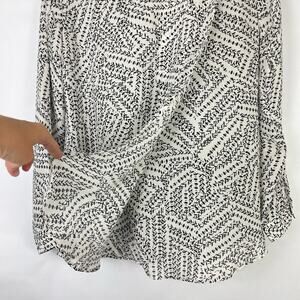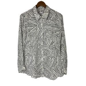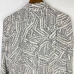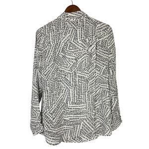 Cabi #3255 | Black & White Print Split Back Long Sleeve Button Down Blouse