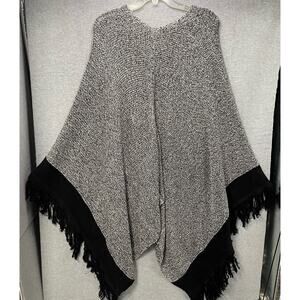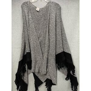 Cabi 3361 Pepper Cape Black And White Fringe Poncho/Cape/Shawl One Size