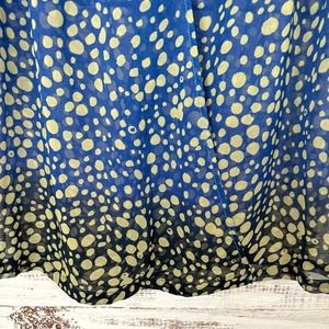 Cabi #344 Blue and Gold Bubbles Wrap Front Sheer Top, EUC, Medium, MSRP $74