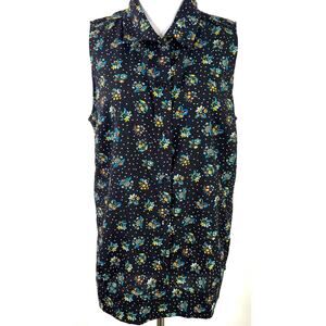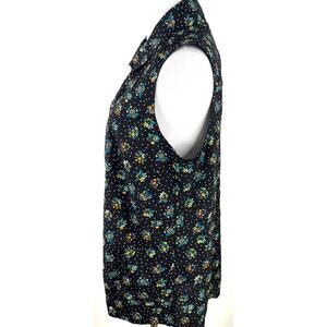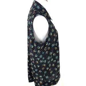 Cabi #3440 Whimsey Black Floral Sleeveless Button Up Blouse Shirt Size Medium